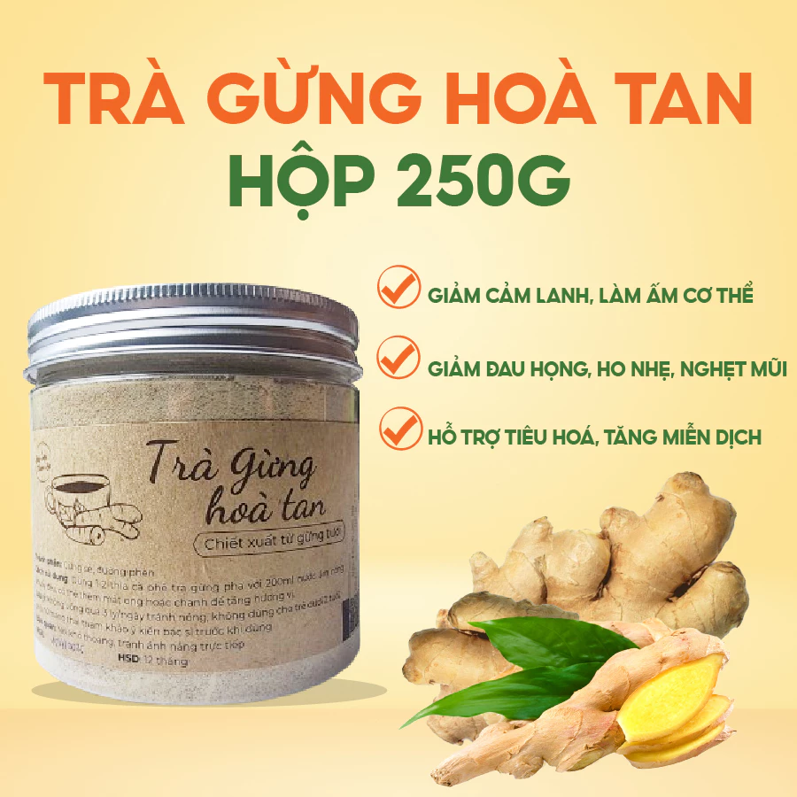 Tiện lợi, dễ sử dụng: Chỉ cần pha 1-2 thìa trà gừng hòa tan với nước nóng, bạn đã có ngay một ly trà thơm ngon, bổ dưỡng mà không cần phải tốn thời gian chế biến cầu kỳ.